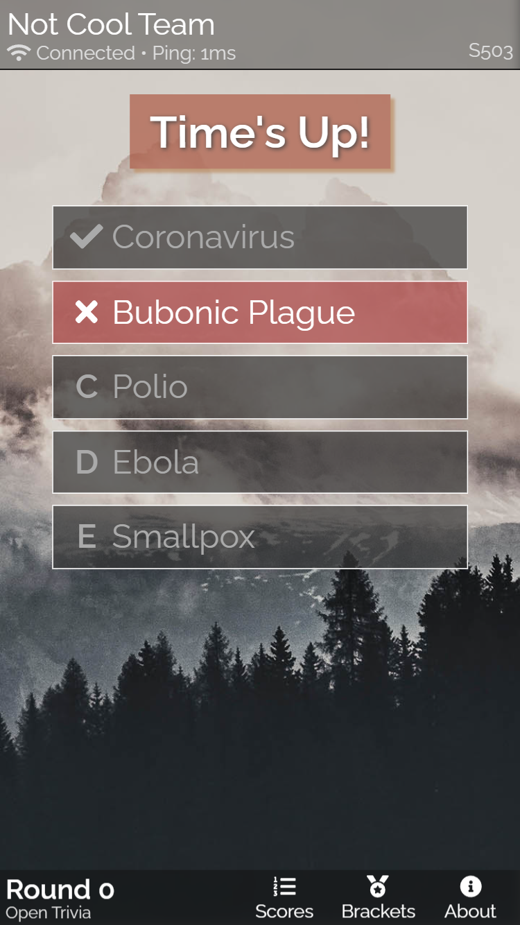 Think of it like Socrative, except less test-like and more flexible. Open Trivia is an all-in-one trivia server that handles a client interface, a host interface, and a slideshow interface (intended to be projected/presented). It supports the following:
